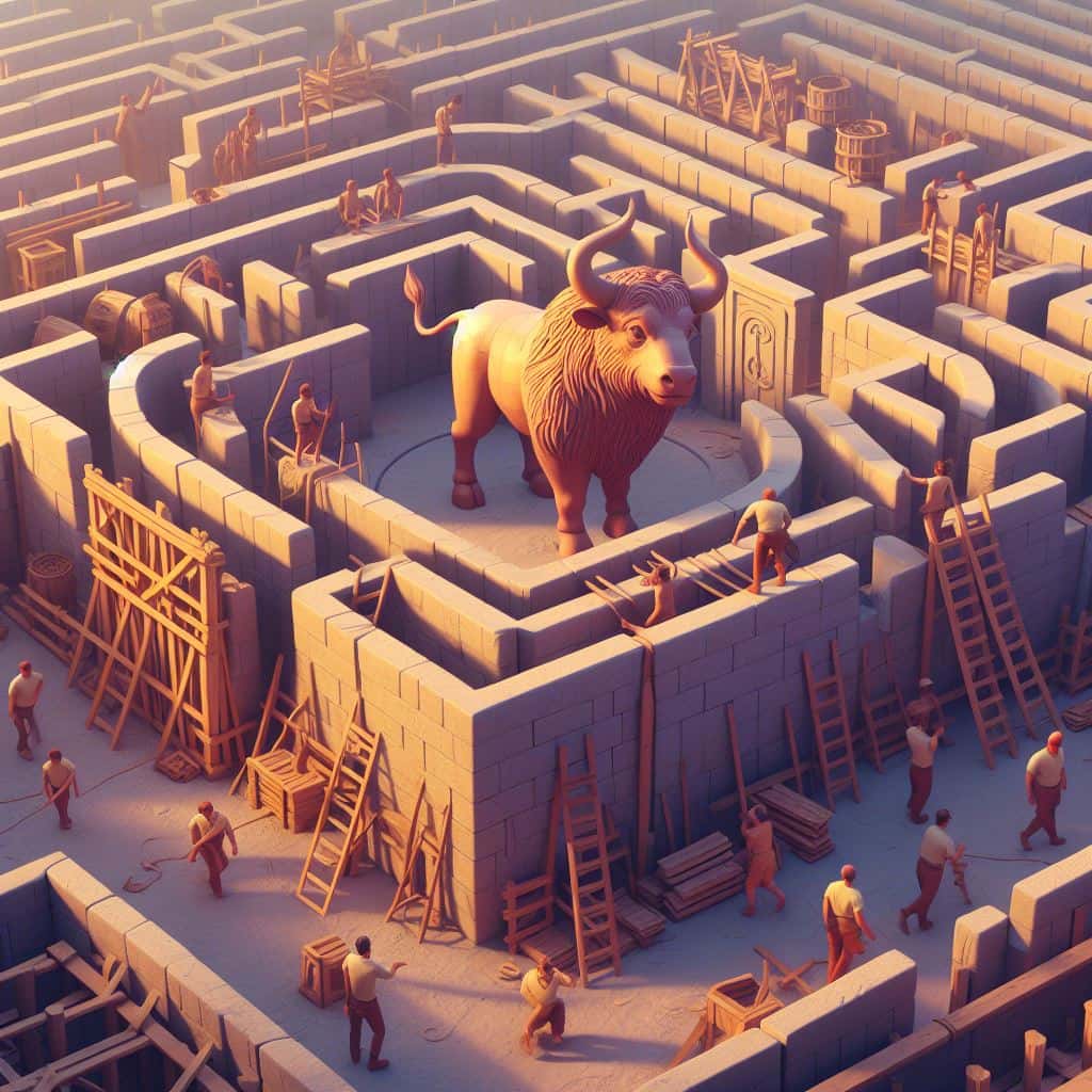 Создание лабиринта минотавра было настоящим испытанием для Дедала, не только посредством его архитектурных навыков, но и потому что этот лабиринт был предназначен для сокрытия опасного и кровожадного существа.