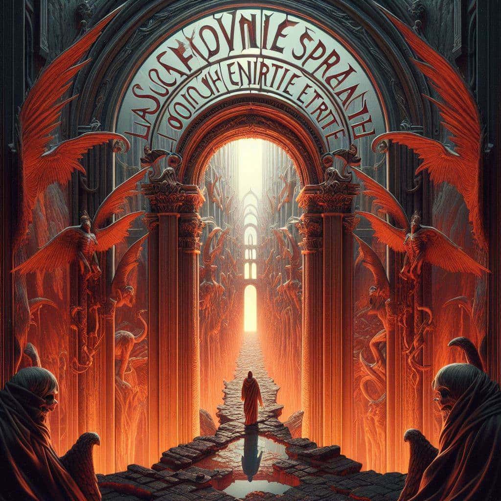 Когда Данте входит во врата ада, он видит леденящую надпись над вратами ада "Оставь всякую надежду, входящий сюда", начертанные на входе. По сути, это предупреждающий знак, дающий всем понять, что, как только вы пройдете через эти врата, пути назад уже не будет и нет шанса на искупление Это задает тон тому, что ждет вас впереди – мрачному и жуткому путешествию по различным кругам ада, где грешники наказываются за свои проступки.